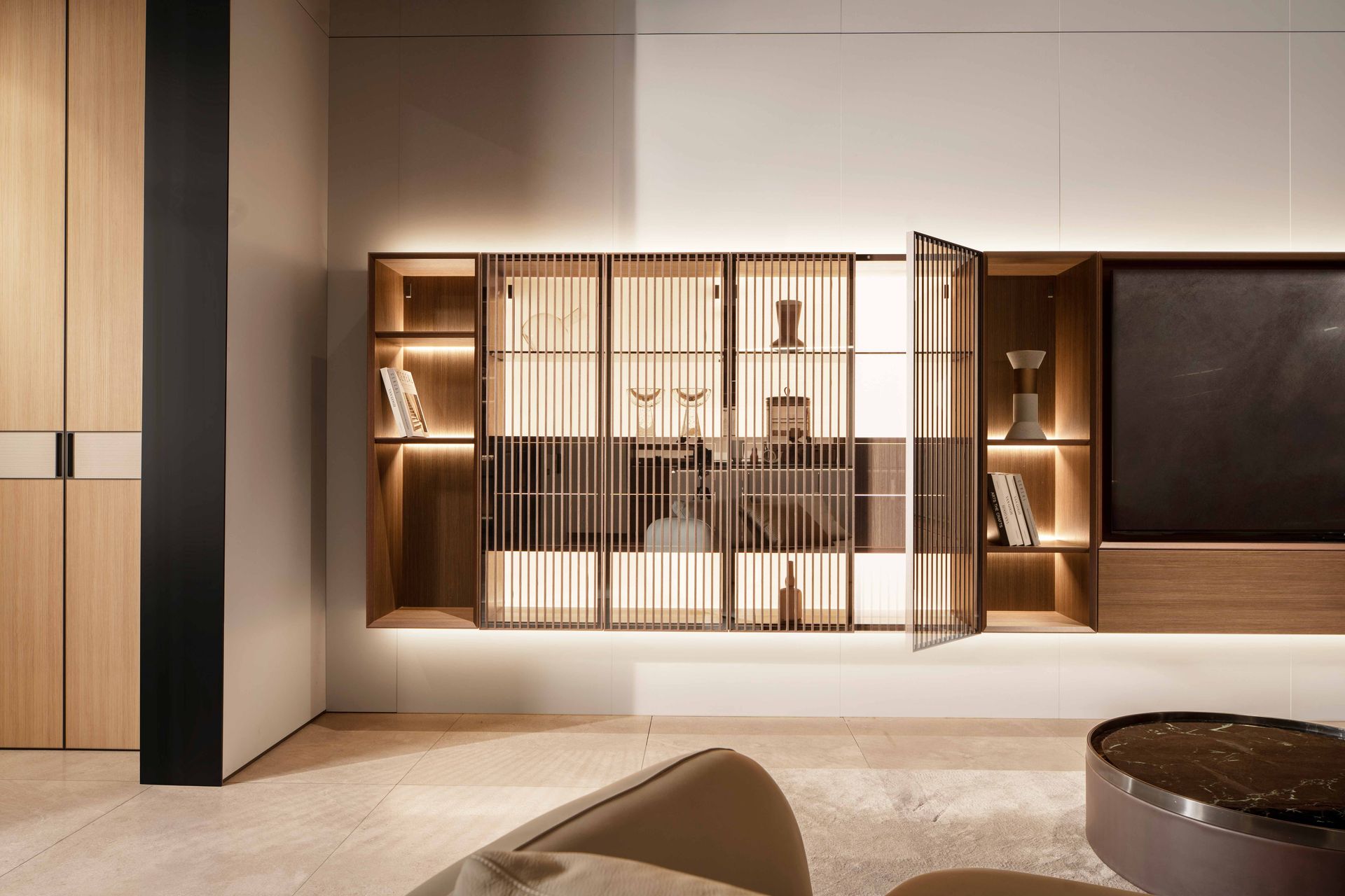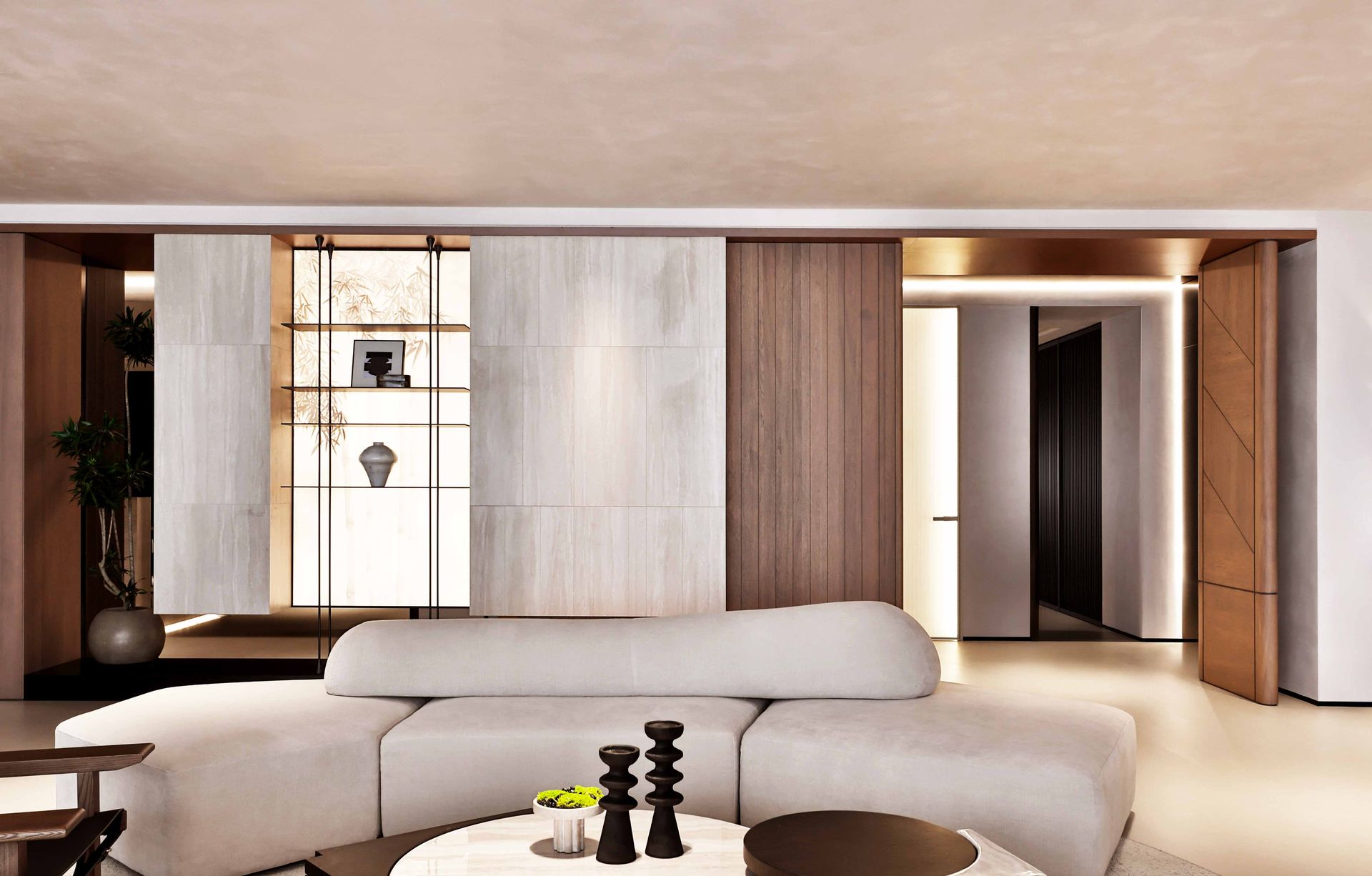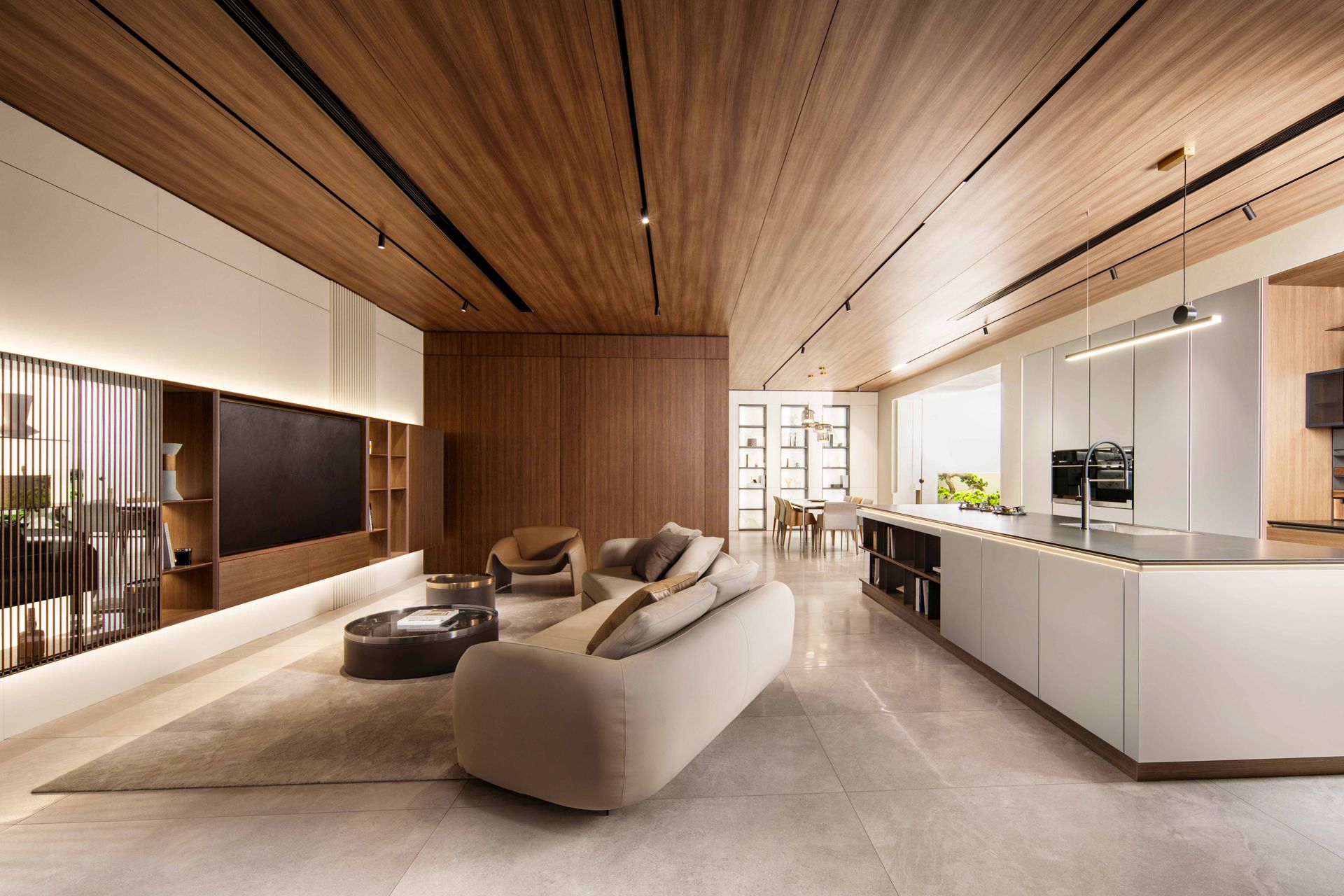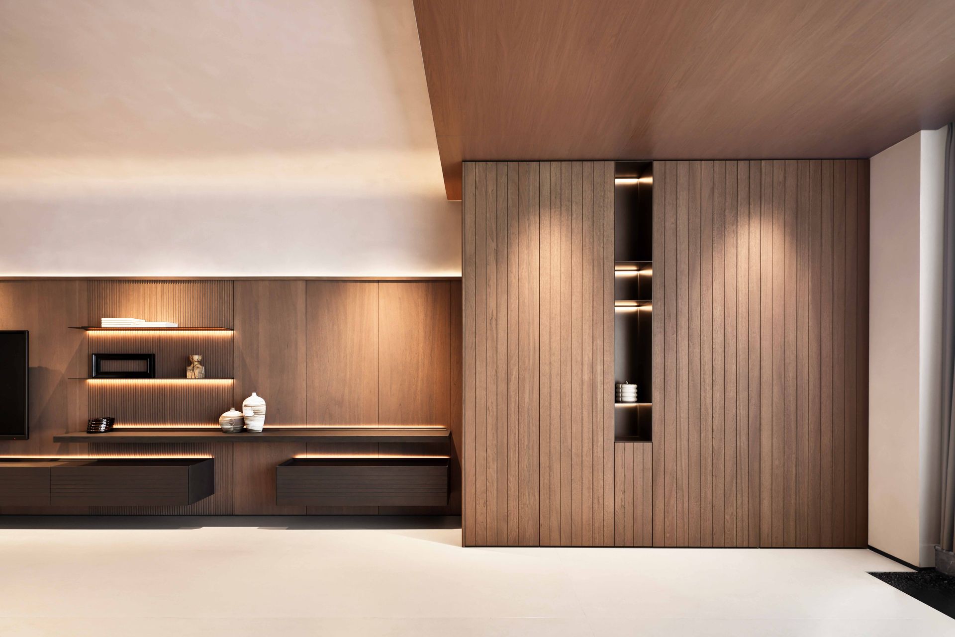 Walk in. The air feels different – calm, intentional, elevated. Light drifts across matte oak panels. The furniture breathes. The cabinetry aligns in silent harmony with the room's rhythm.