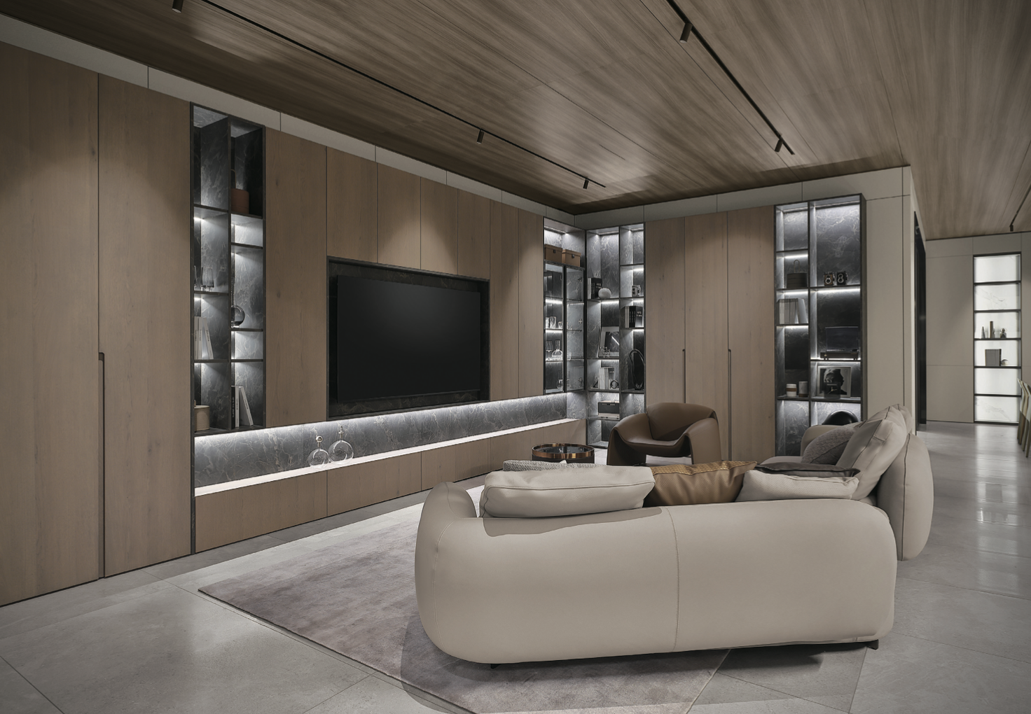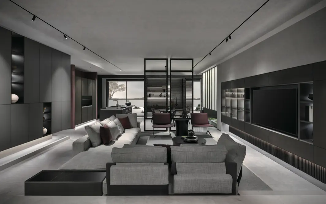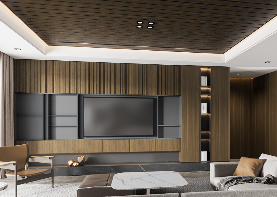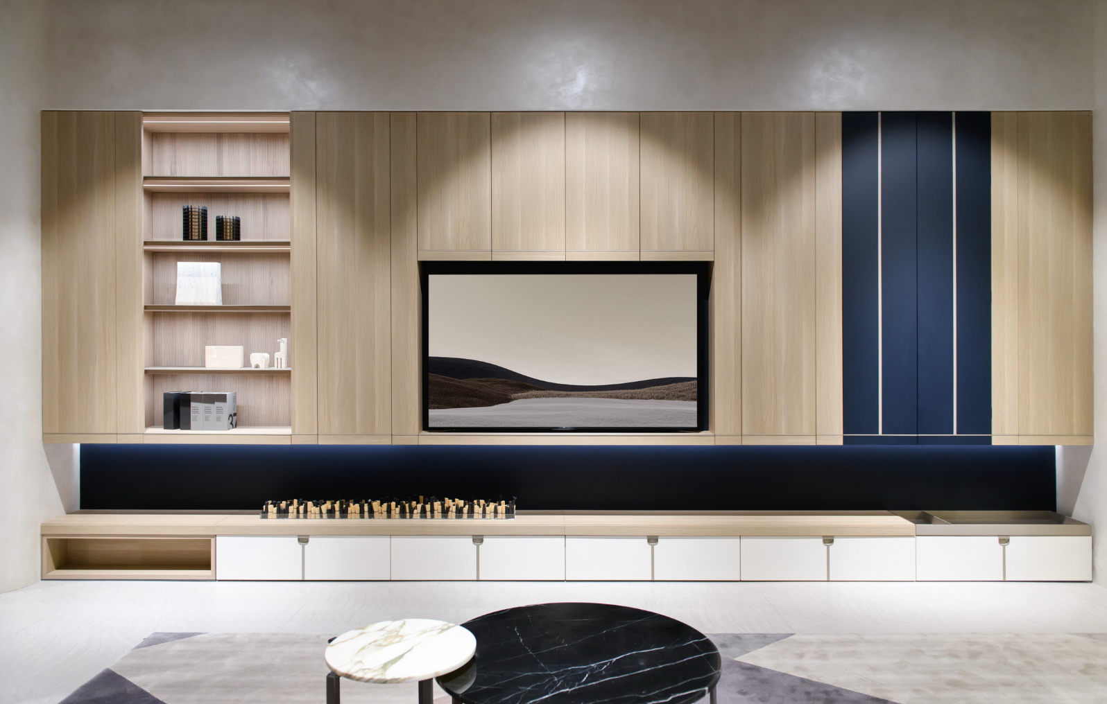 Walk in. The air feels different – calm, intentional, elevated. Light drifts across matte oak panels. The furniture breathes. The cabinetry aligns in silent harmony with the room's rhythm.