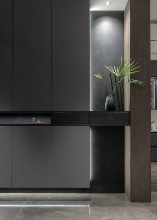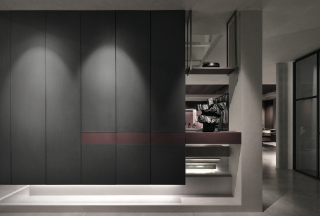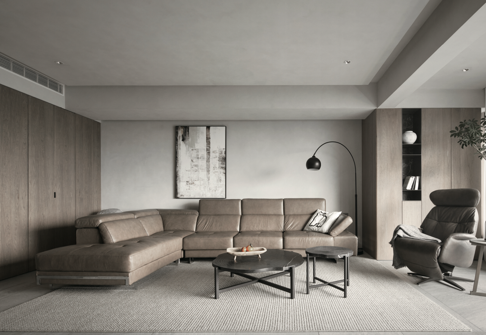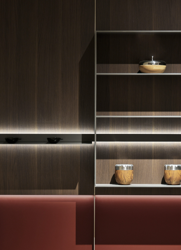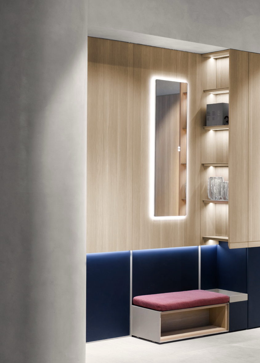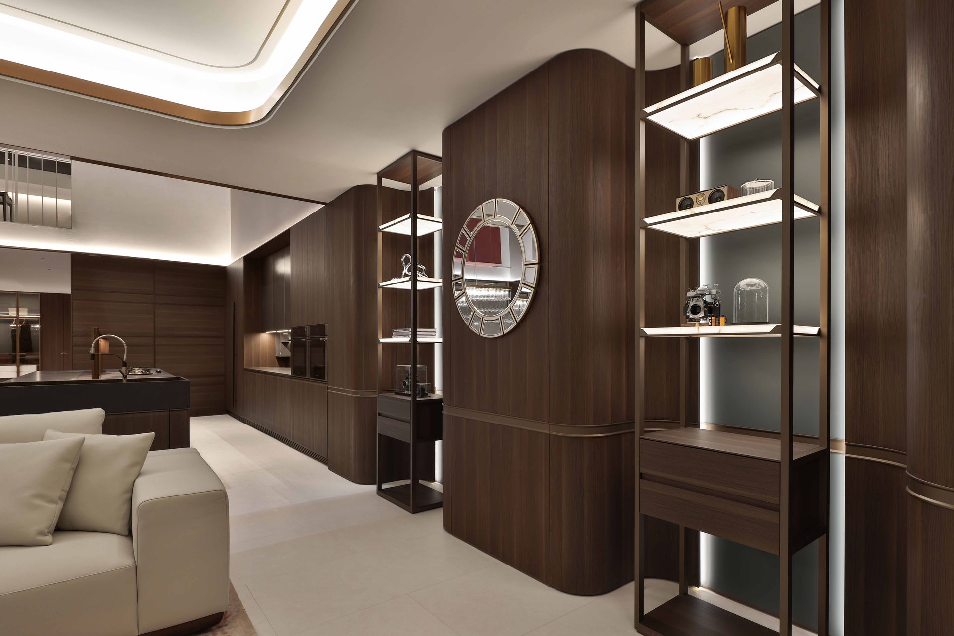 Walk in. The air feels different – calm, intentional, elevated. Light drifts across matte oak panels. The furniture breathes. The cabinetry aligns in silent harmony with the room's rhythm.