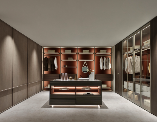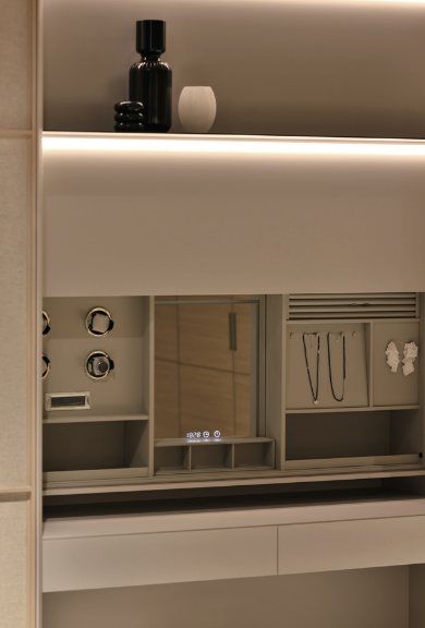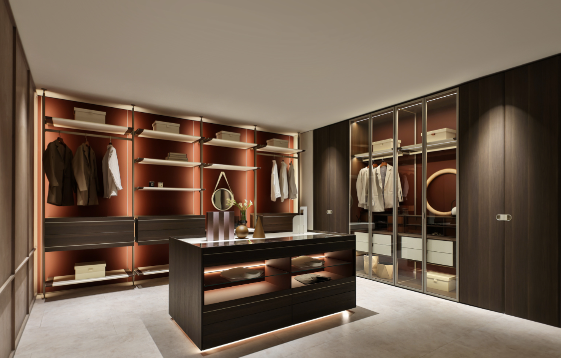 You step into your closet. Soft LED light spills across glass doors and velvet lined drawers. Every shoe, every shirt, every piece - in perfect order.